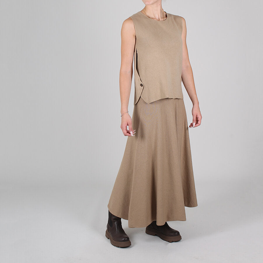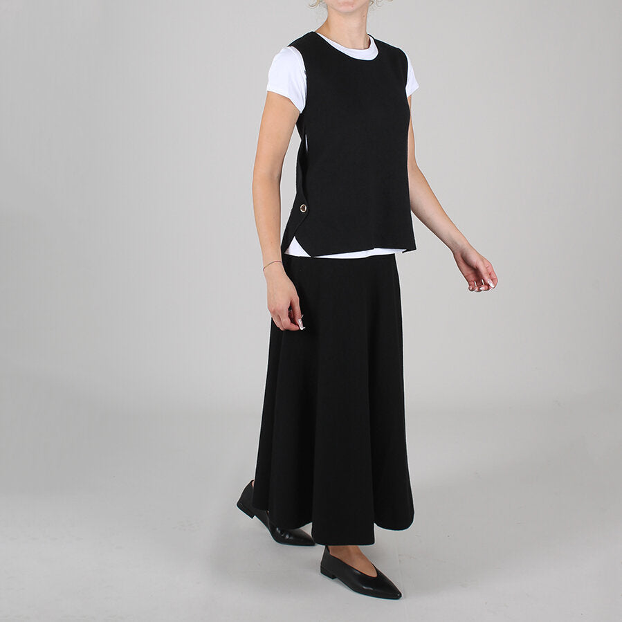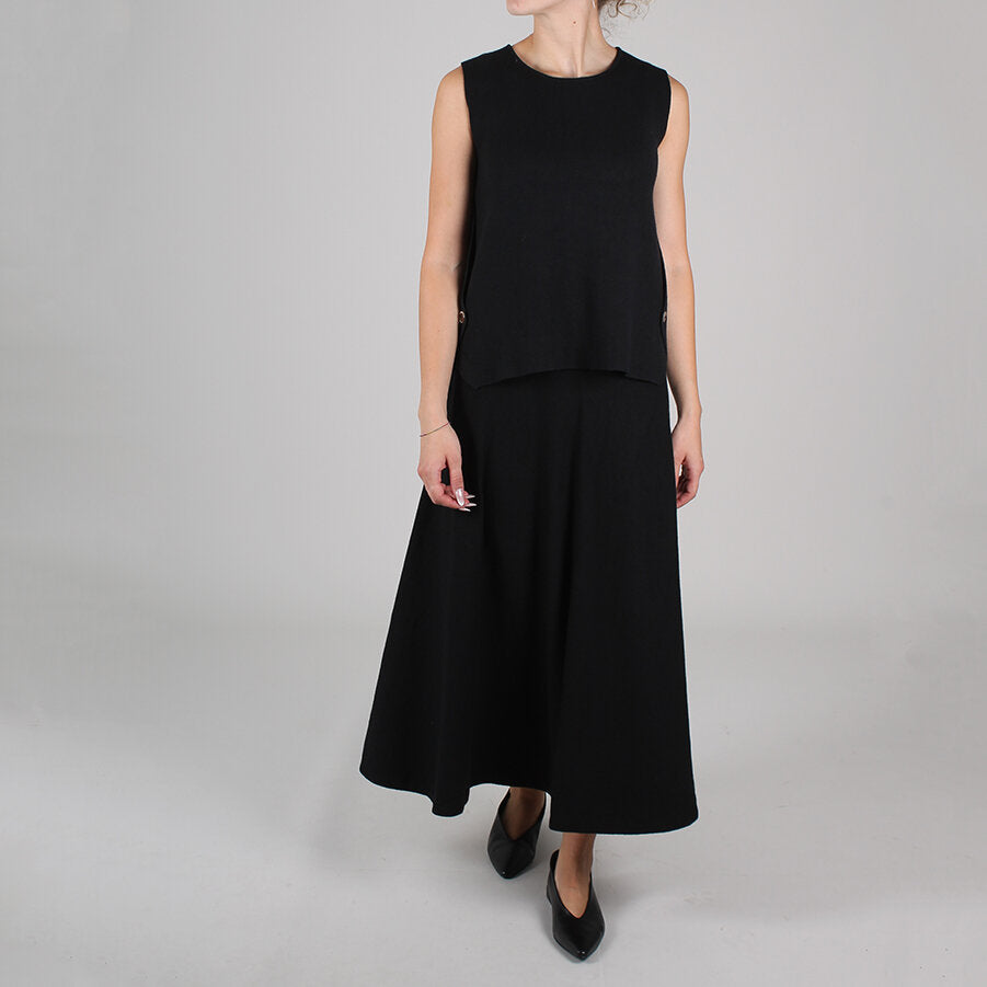 Top smanicato con scollo rotondo e dettagli laterali con bottoni decorativi