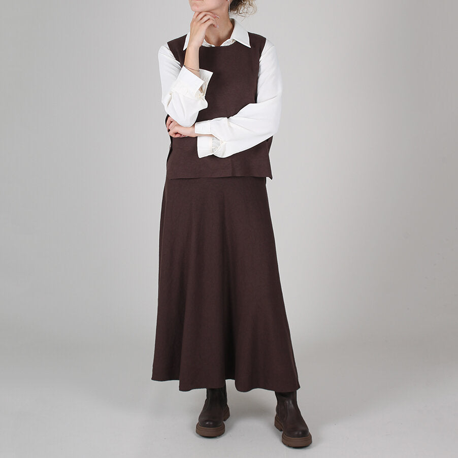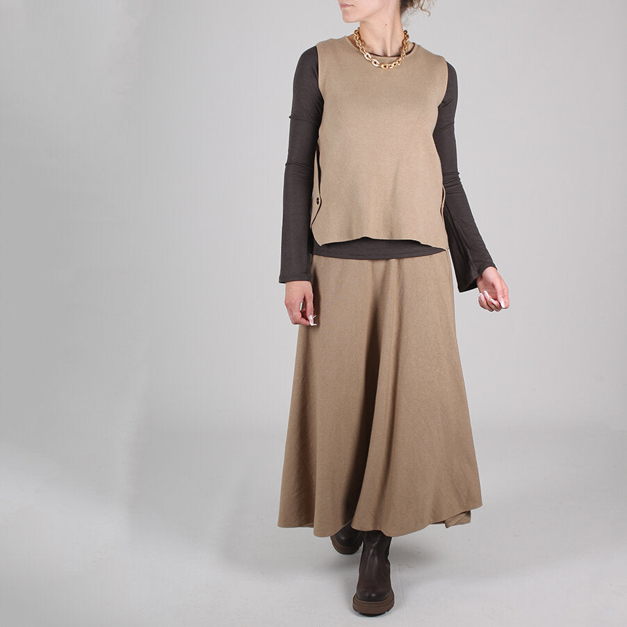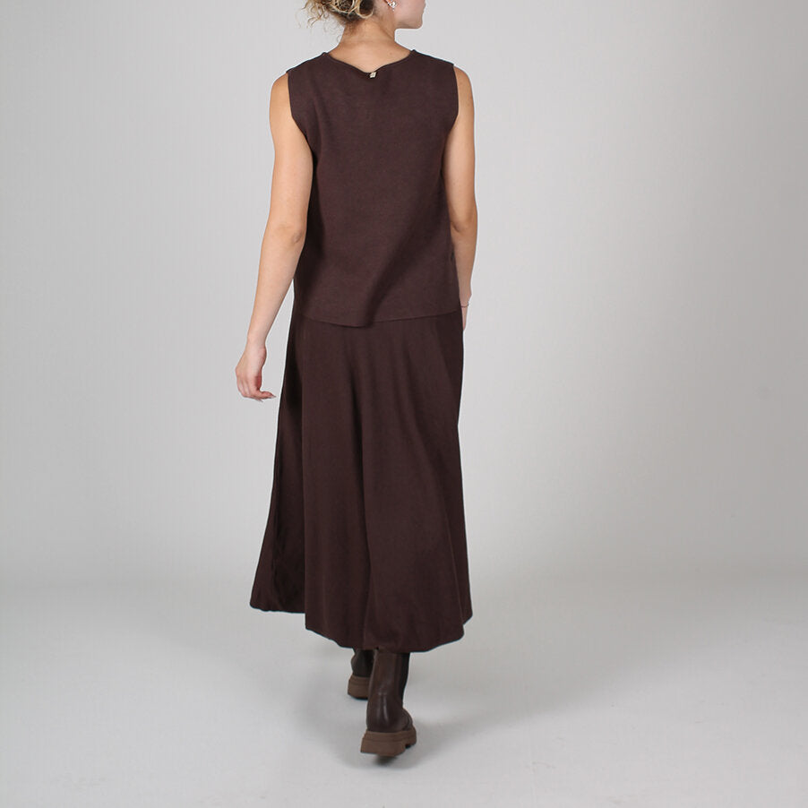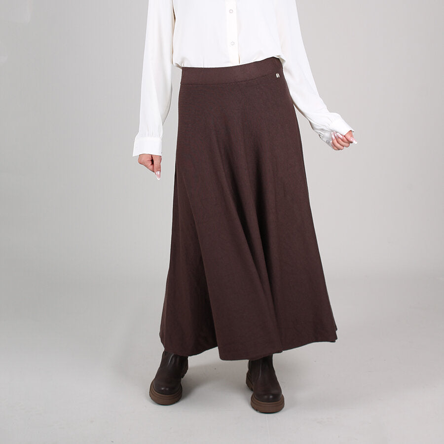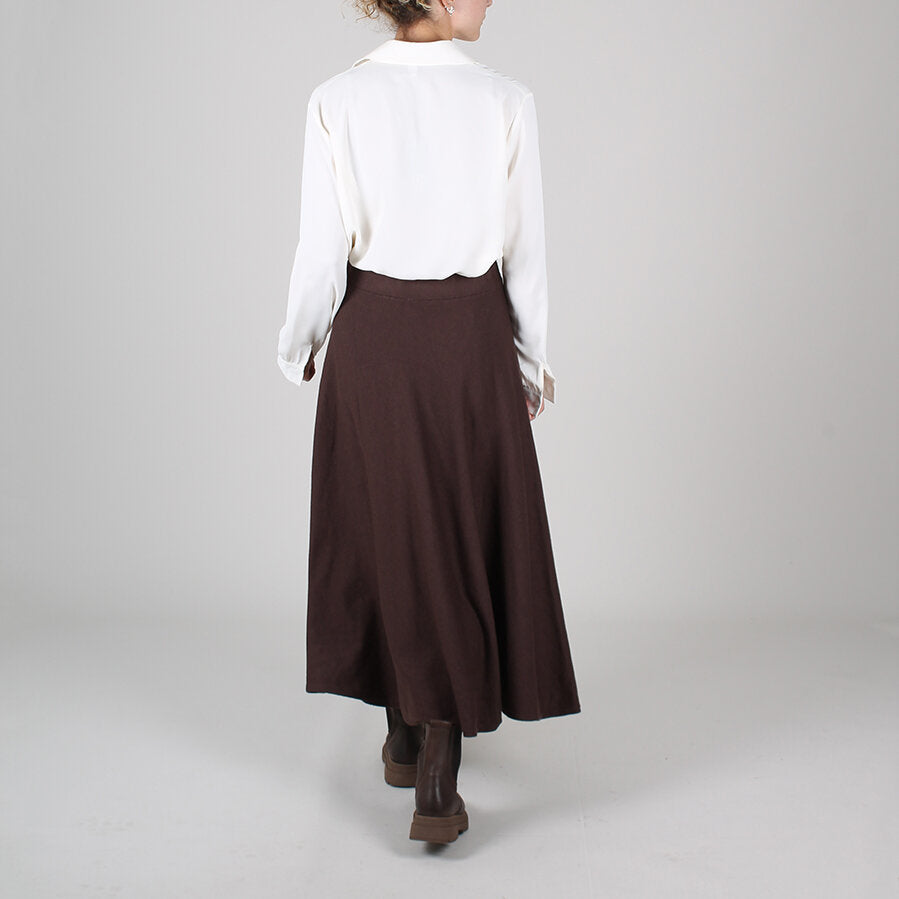 Gonna svasata dal taglio morbido e fluido, con elastico in vita.