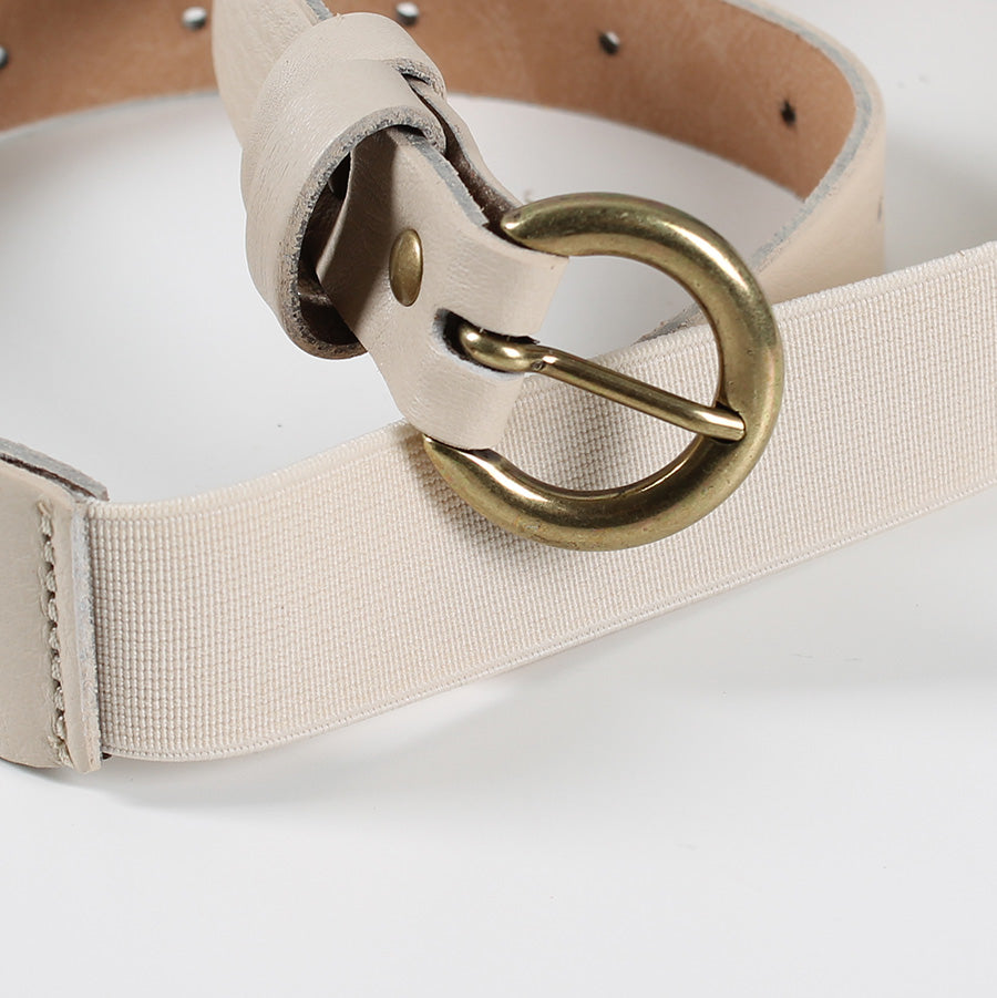 Cintura in pelle con fibbia metallica oro.