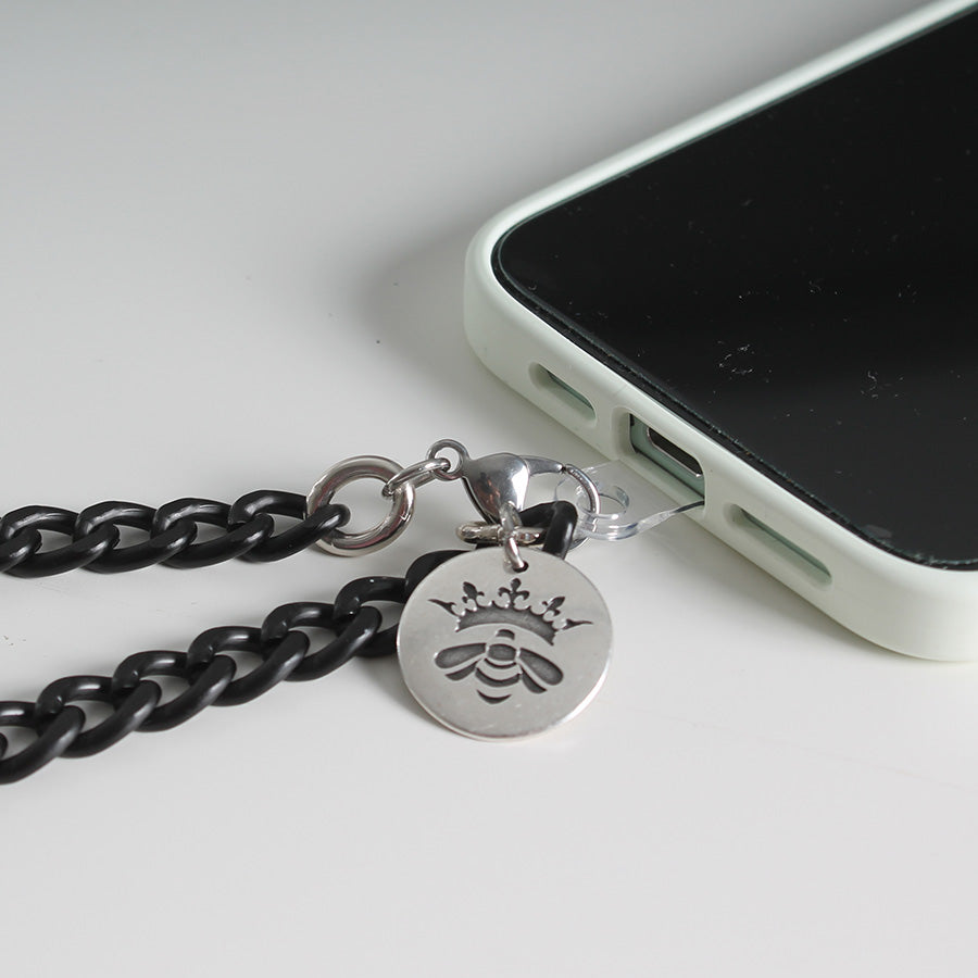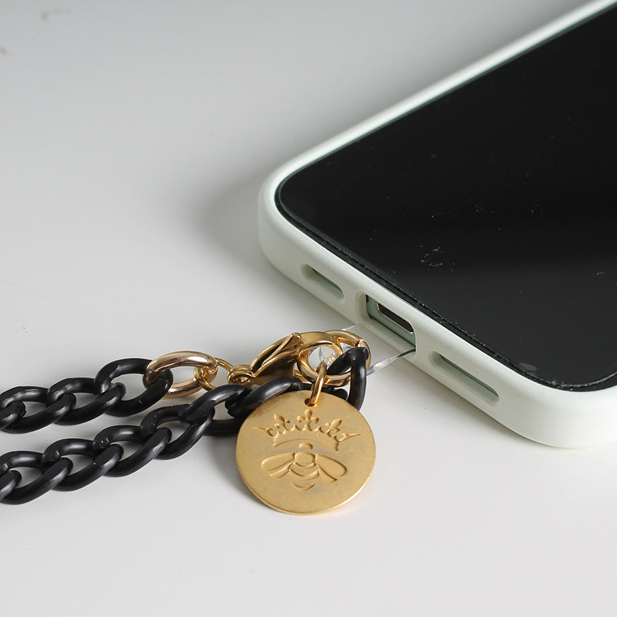 Tracolla porta-cellulare in metallo con aggancio universale in plastica. Ciondolo in zama marchiato BQ.Chiusura a moschettone in alluminio.Fatto a mano in Italia da Momi, in esclusiva per Vaso.In ottemperanza al DL 206 del 6/9/2005 si comunica che i prodotti a marchio Momi sono prodotti in Italia, nel pieno rispetto delle normative vigenti: Realizzati in acciaio, alluminio, cristalli, resine acquistati e lavorati da aziende italiane, sono esenti da nichel, piombo e cadmio, conformemente alle leggi italiane vigenti in materia.