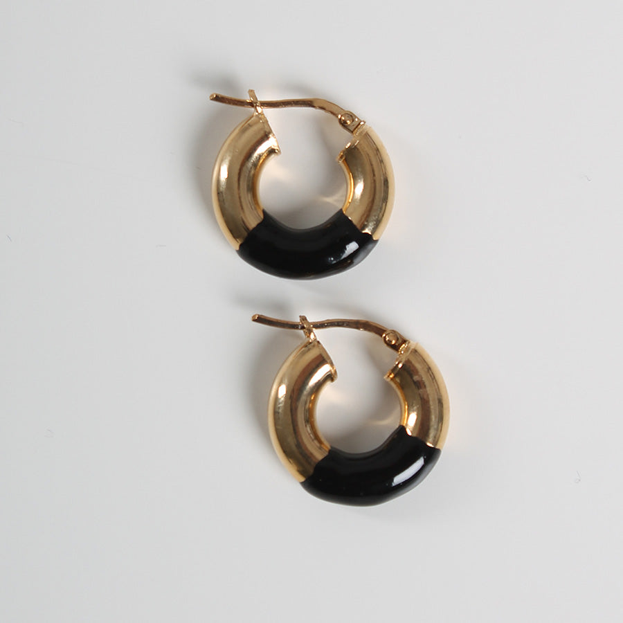 Orecchini in bronzo placcato oro, smaltato a mano.