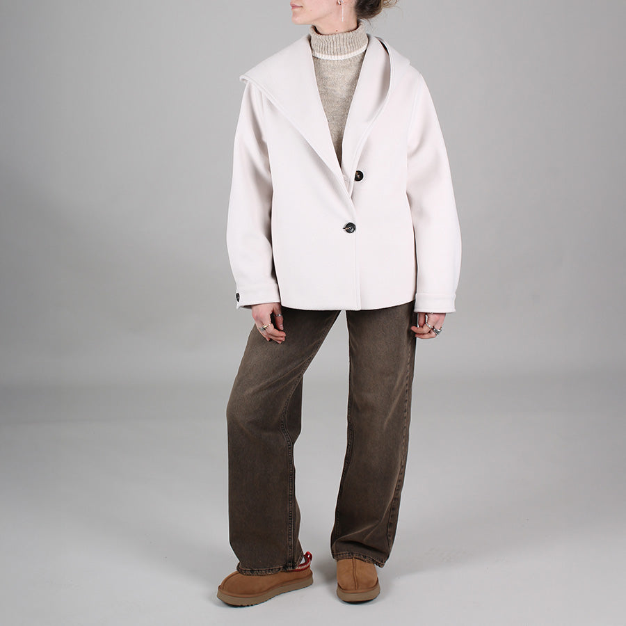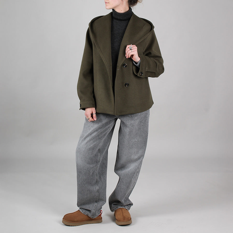 Cappotto corto in calda viscosa, taglio morbido e leggermente svasato.