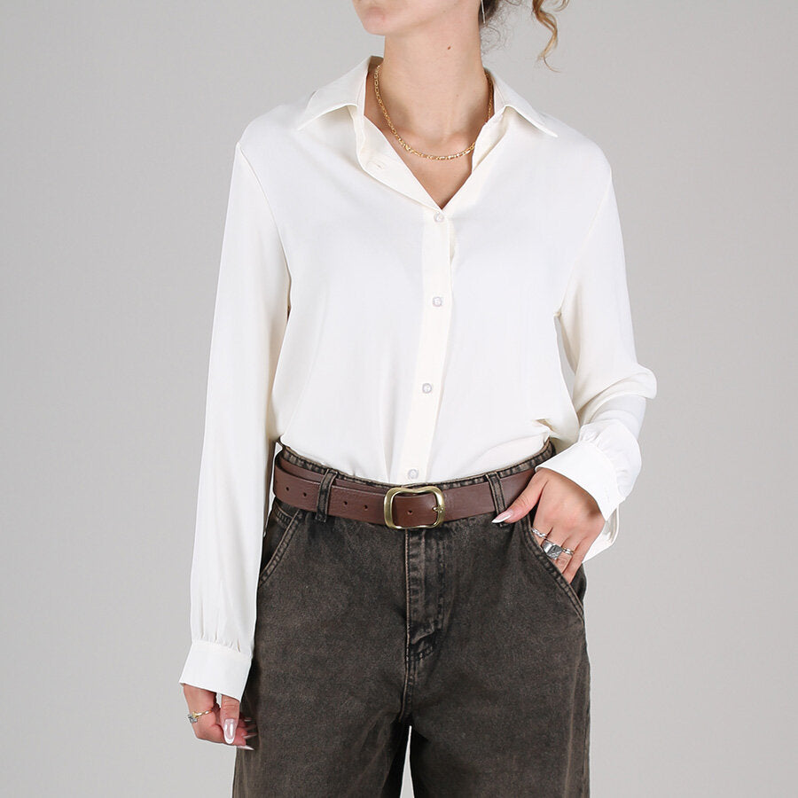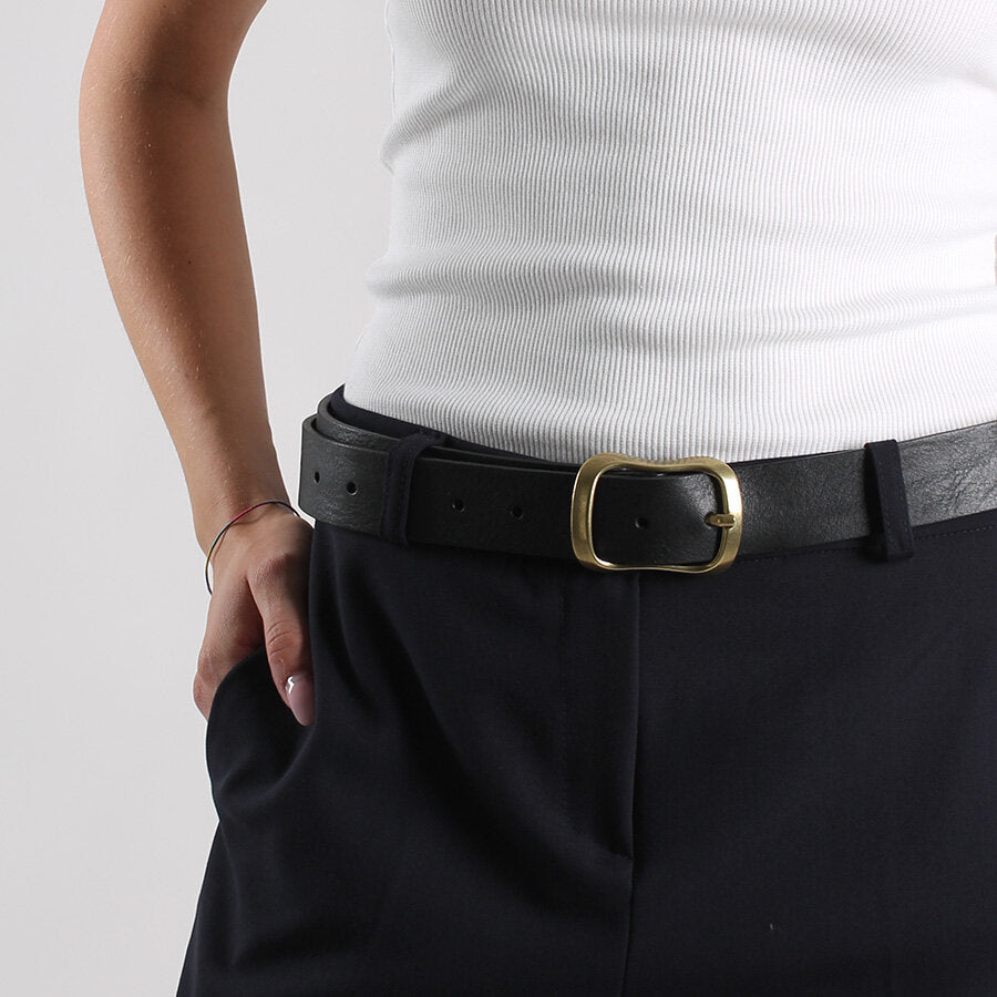 Cintura in cuoio con fibbia oro.