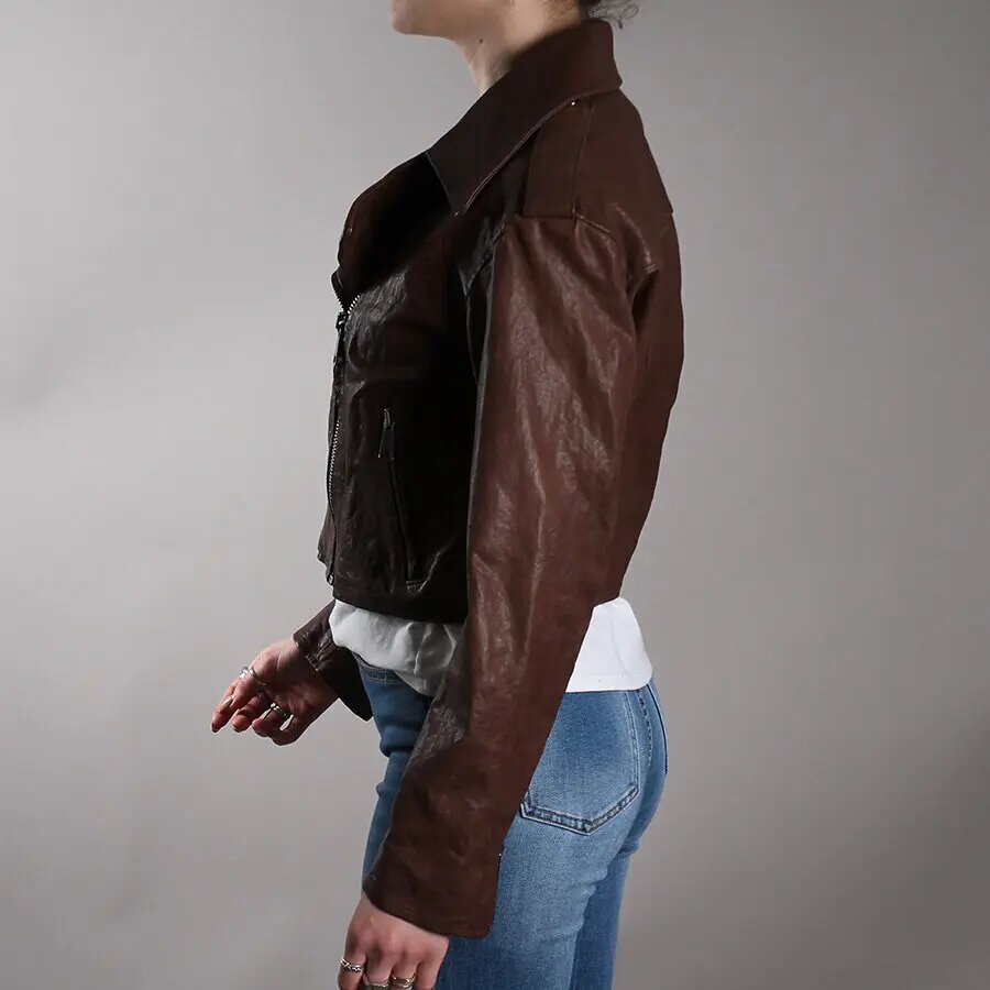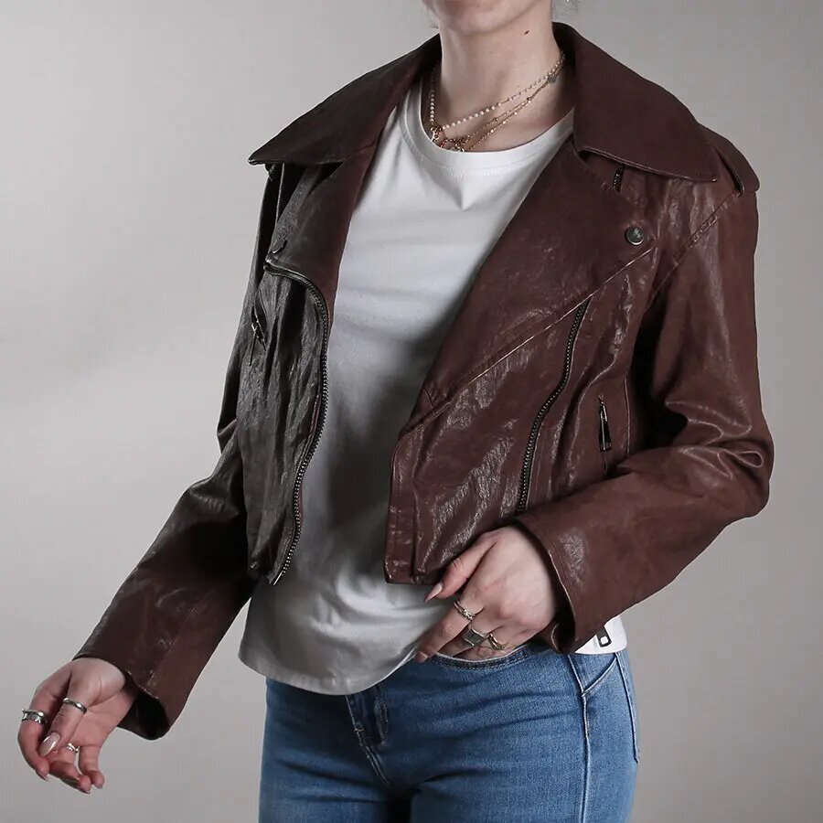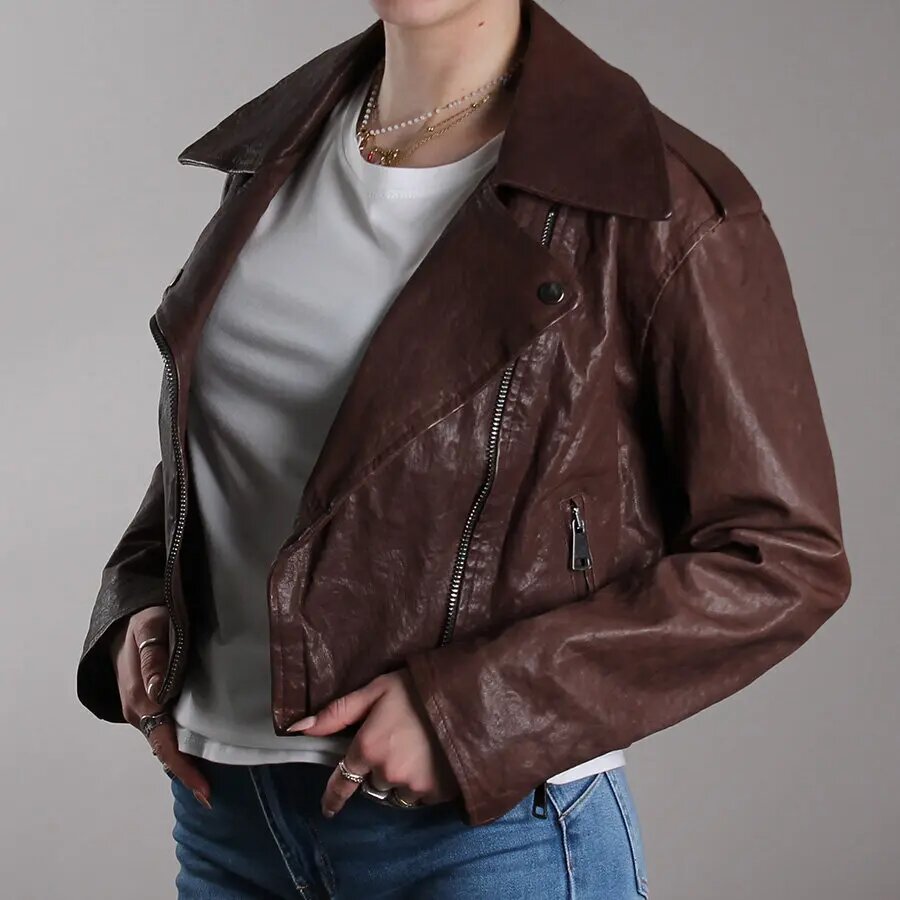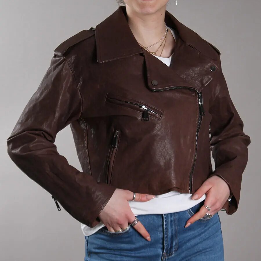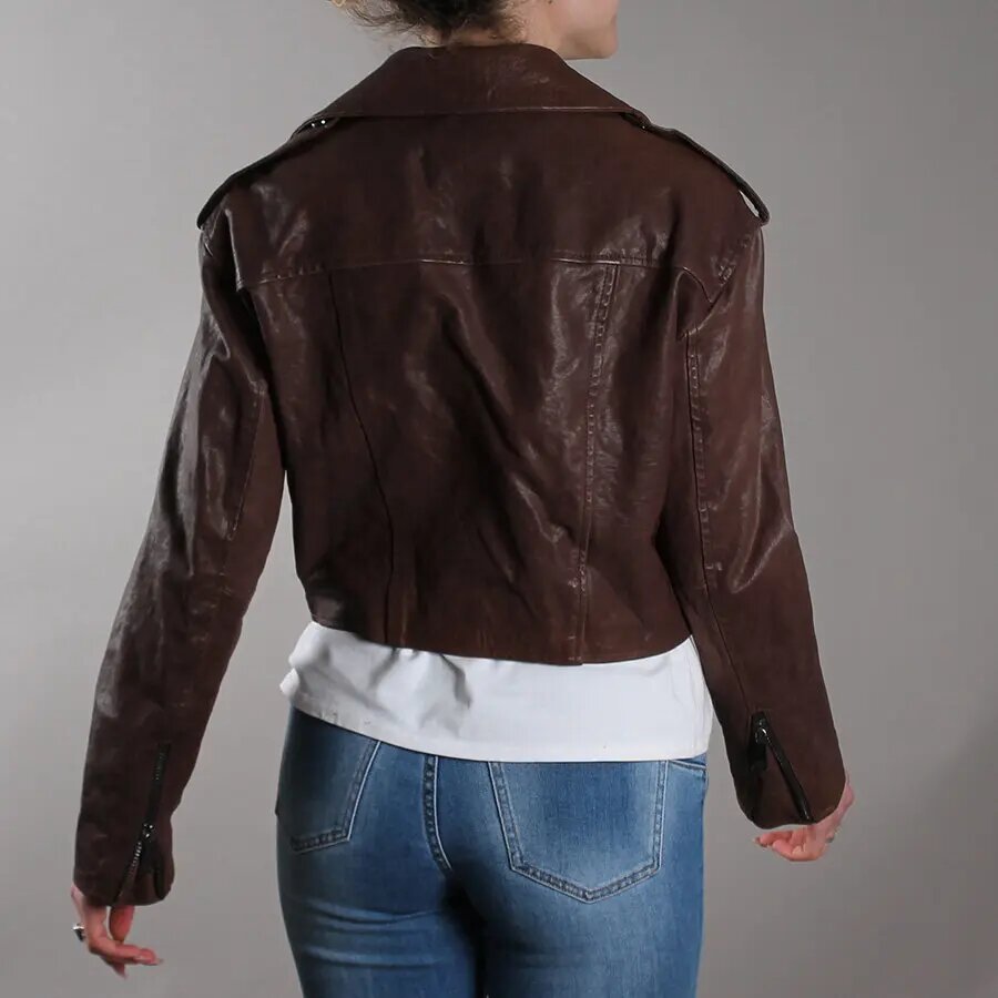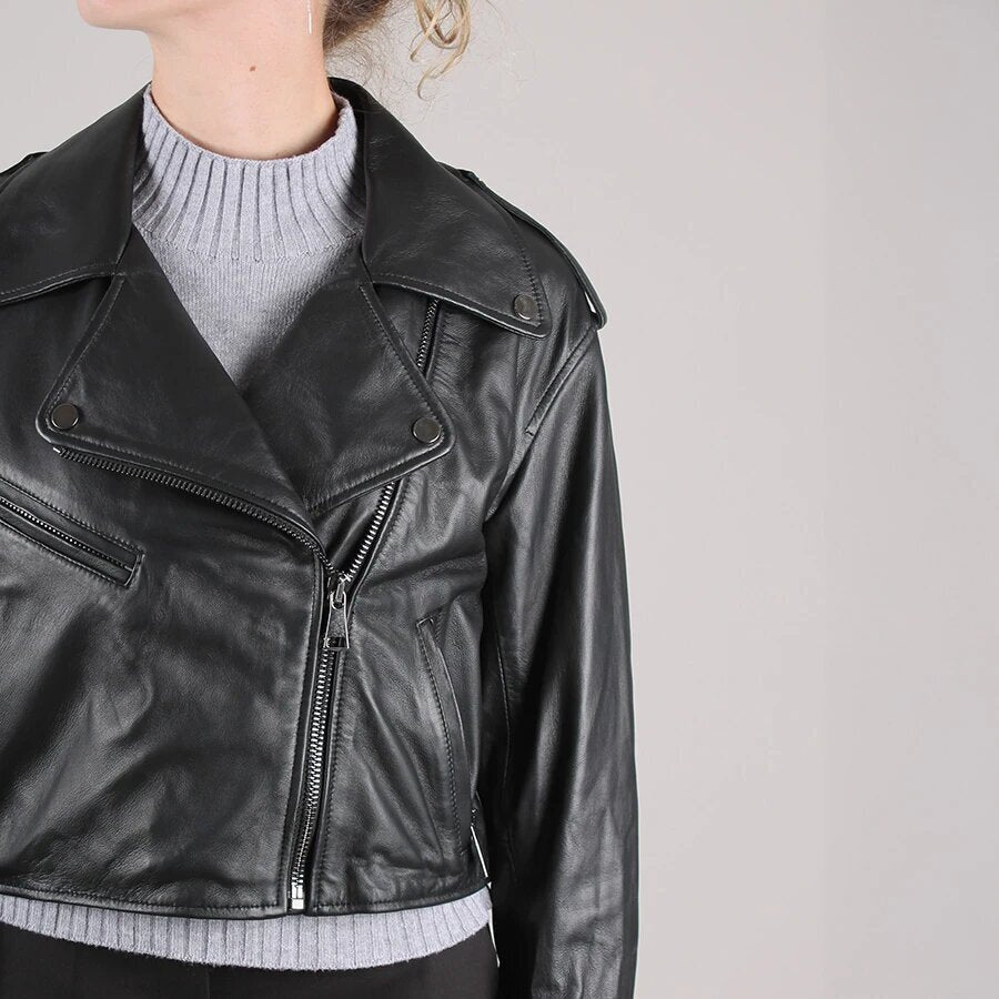 Chiodo in vera pelle, taglio corto e fit deciso, cerniere metalliche e il reverse accentuano il carattere grintoso del design.