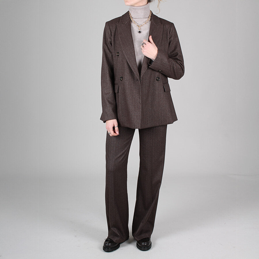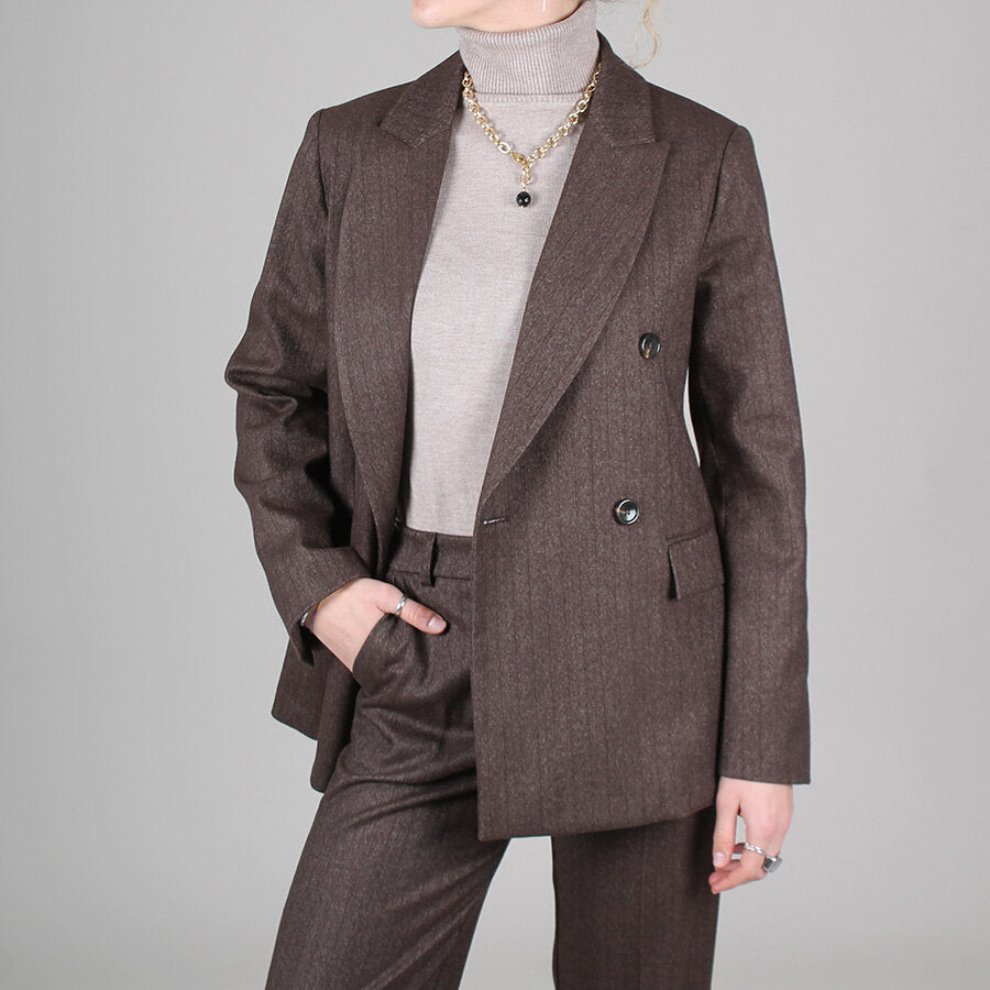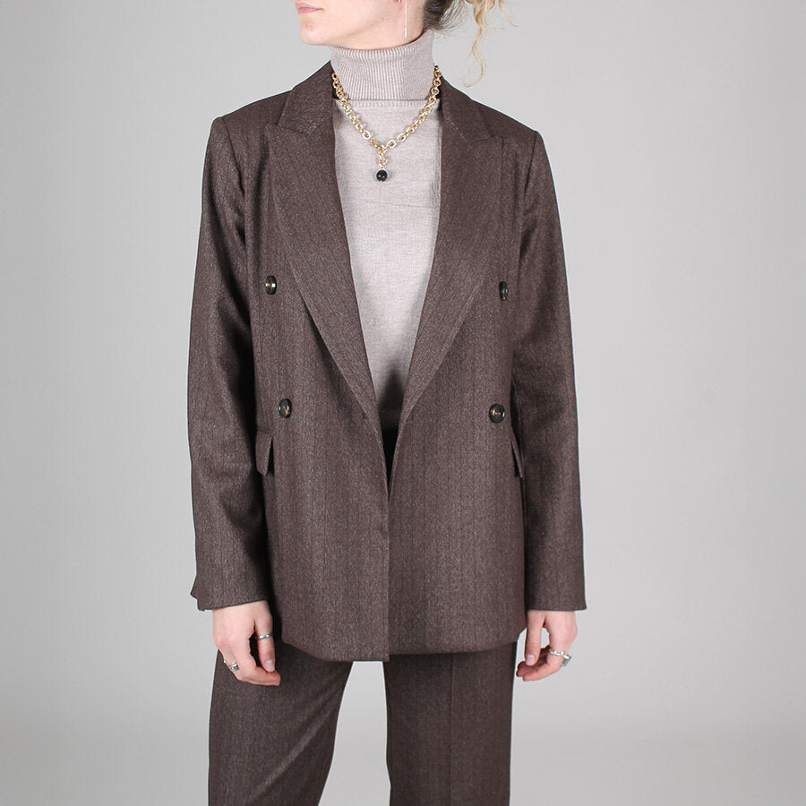 Giacca doppiopetto, in tessuto caldo e confortevole. Taglio sartoriale con revers classici. Interno foderato.