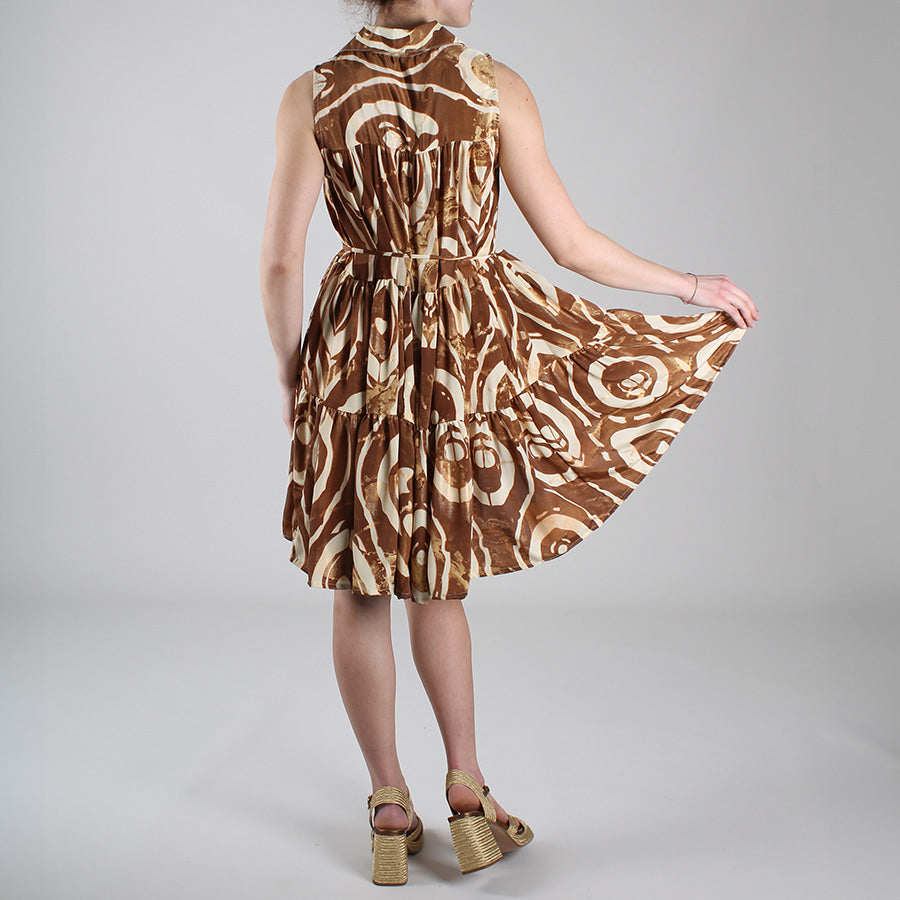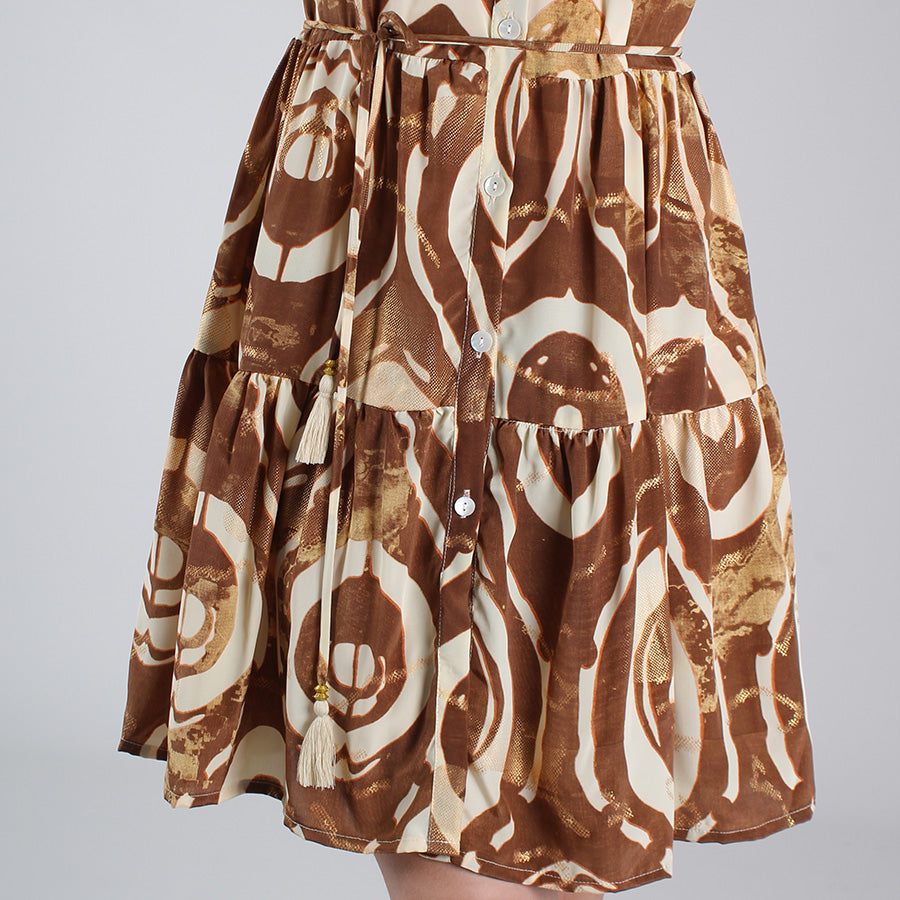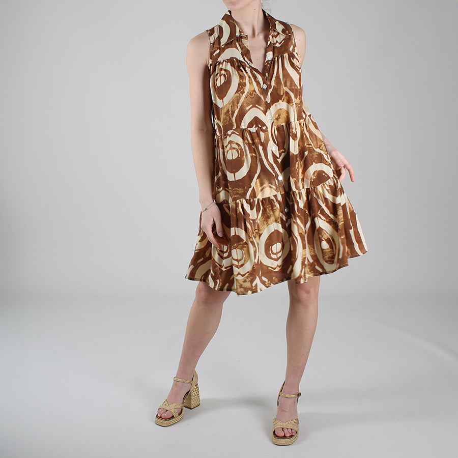Abito corto in seta indiana, nei toni del color caramello.