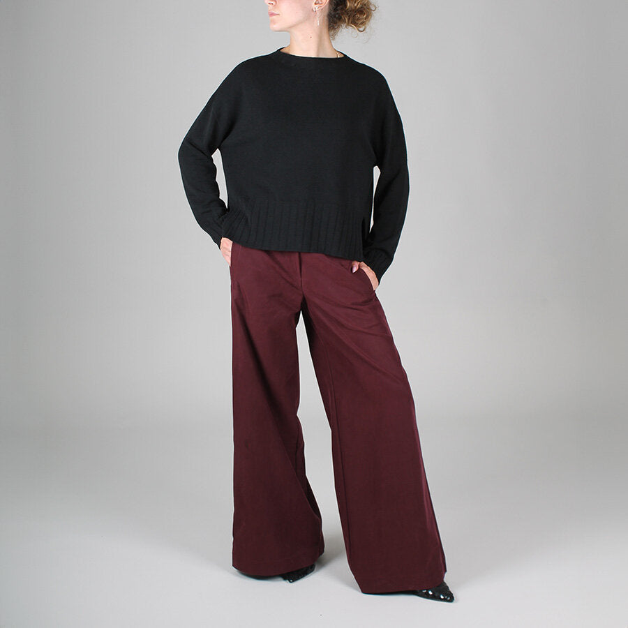 Maglia realizzata in filato caldo e fluido. Girocollo classico e dettaglio a coste sul fondo e sul polso.