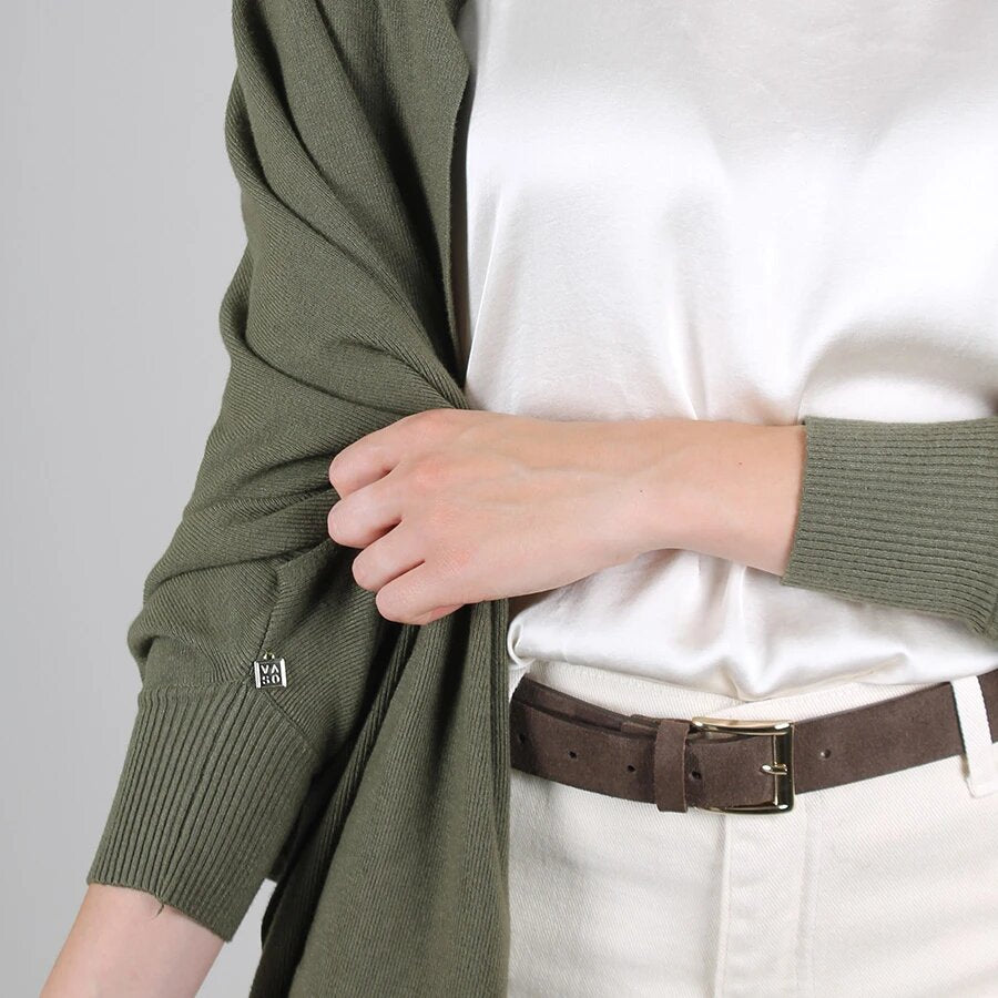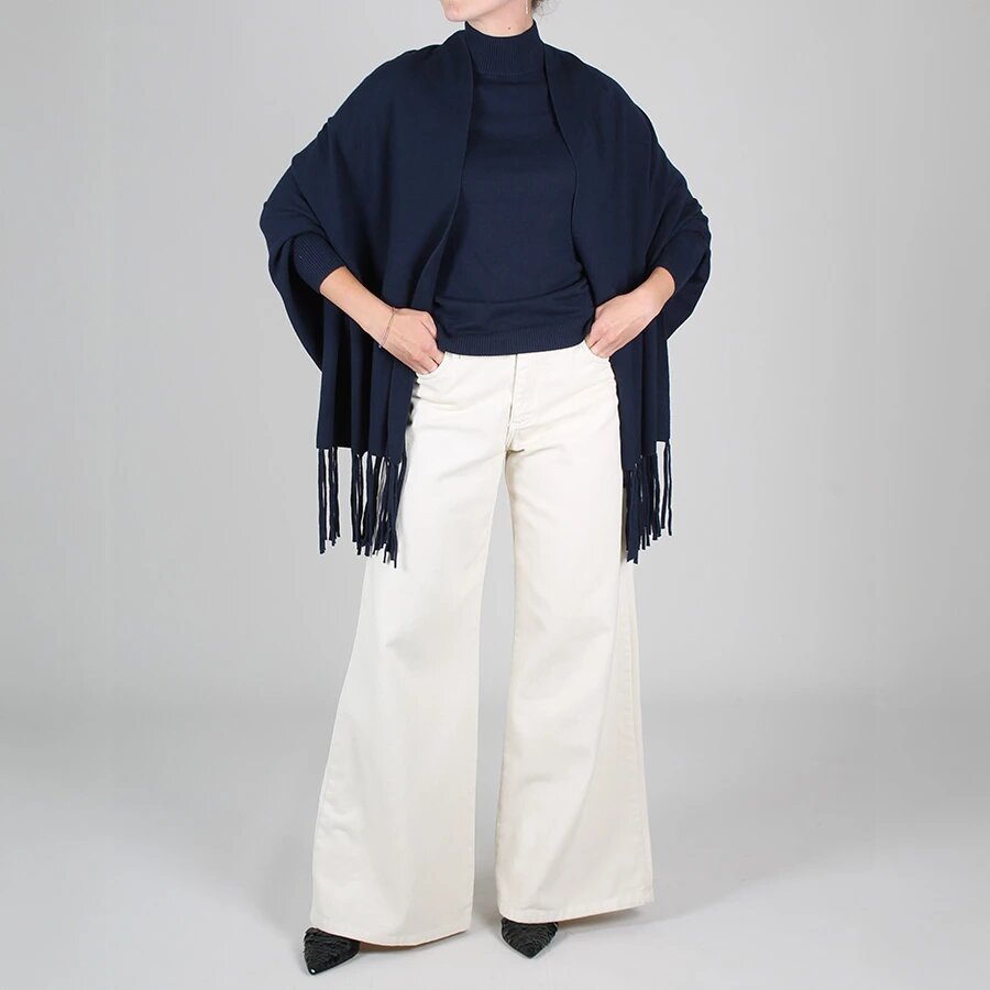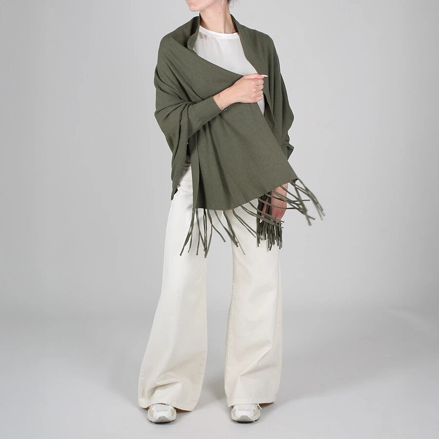 Cardigan aperto effetto mantella, morbido e versatile, perfetto sopra qualsiasi look.
