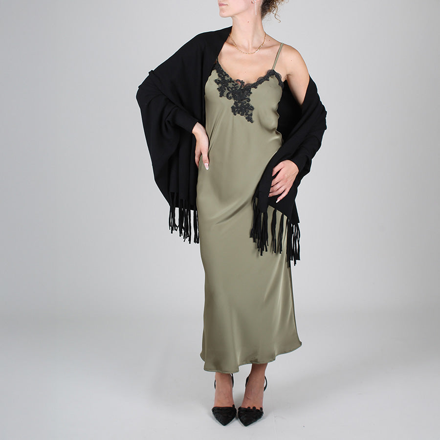 Realizzato in tessuto di viscosa mano cashmere, leggero ma caldo al punto giusto, adatto a tutte le stagioni: lo usi sempre, perché il suo tessuto lo permette.