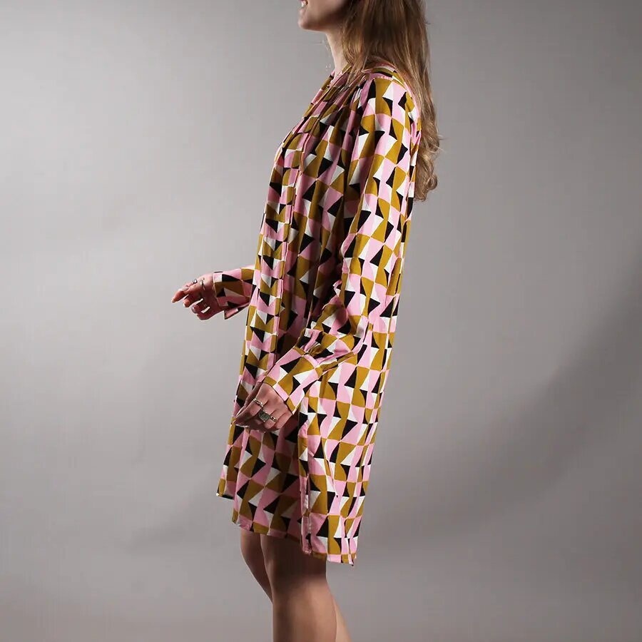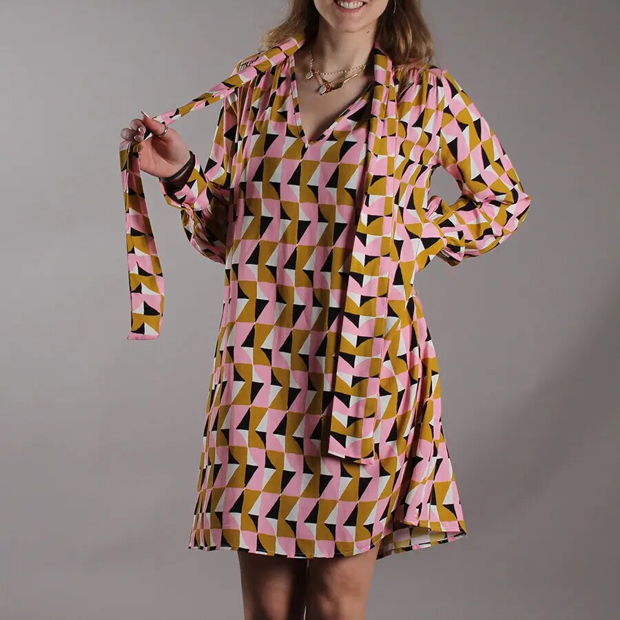 Abito corto in viscosa con stampa in esclusiva per Vaso.