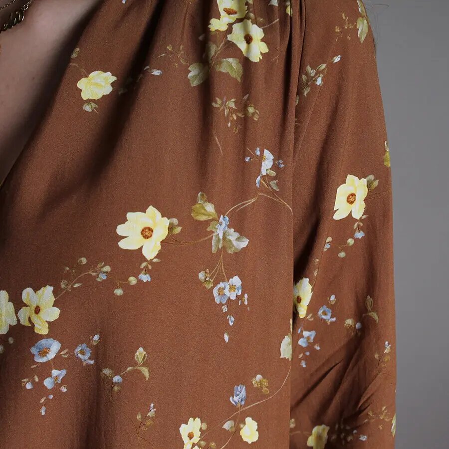 L'abito ha una scollatura a V arricchita da lacci in tessuto da annodare al collo per un tocco elegante e versatile.