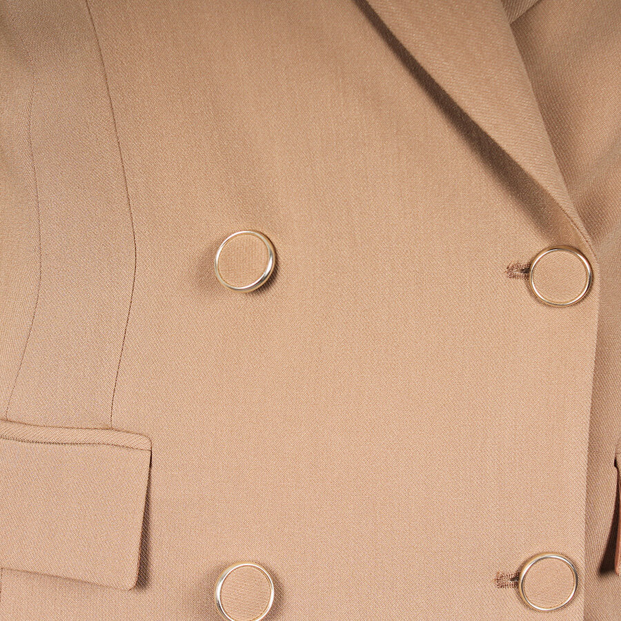 Abito giaccaSpalline imbottite, tasche applicate, chiusura frontale doppiopetto con bottoni rivestiti in tono.Vestibilità regolare.E disponibile in Cammello, Nero, Grigio.63% Poliestere, 34% Viscosa, 3% Elastan.La modella indossa la taglia SM, è alta 170 cm e pesa 52 Kg.La taglia SM veste dalla 38 alla 42, la taglia ML veste dalla 44 alla 46.Il prodotto può essere lavato come delicato a massimo 30°. Non stirare.Lavare separatamente.Prodotto in Italia, distribuito da Vaso srl.