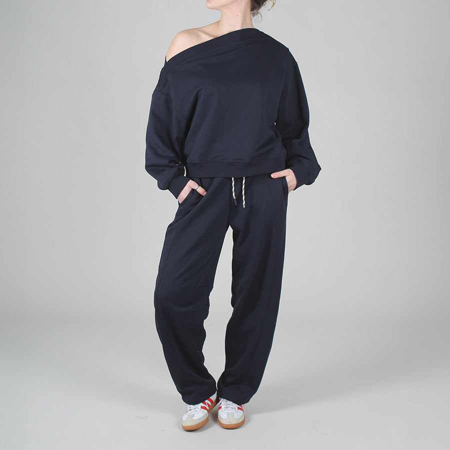 Appartiene alla capsule Jet, coordinata con felpa monospalla e felpa bomber, pensato per essere indossato insieme o mixato separatamente.