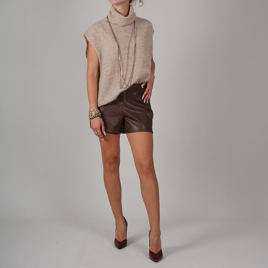 Shorts in ecopelle, vita regolare e chiusura laterale con zip.