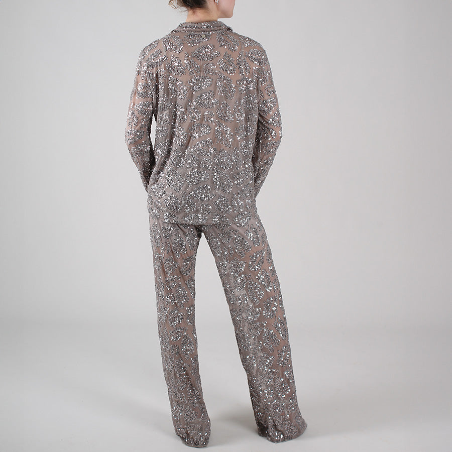 Camicia Luce, in tulle elasticizzato con prezioso ricamo in paillettes.