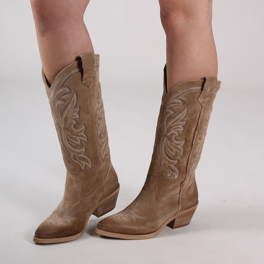 Texano in camoscio, con ricami.