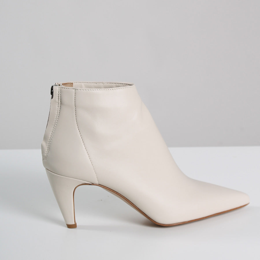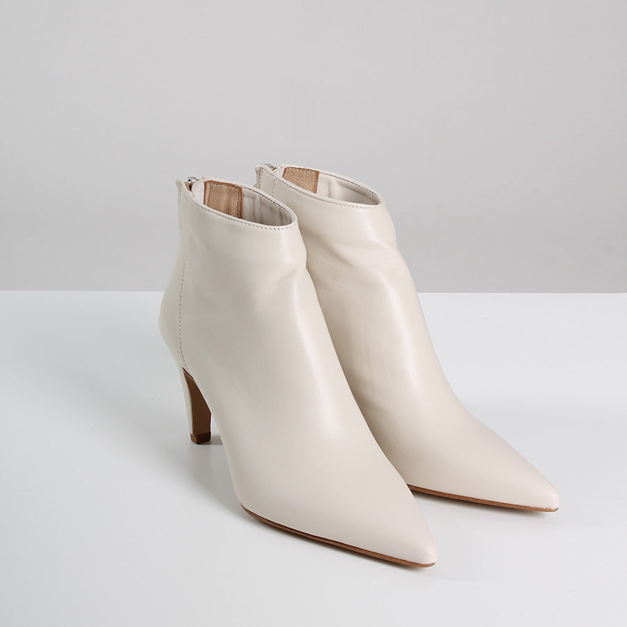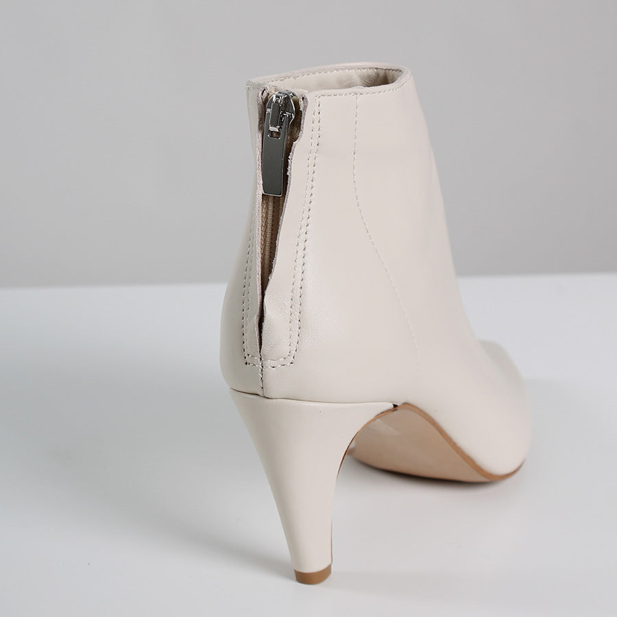 Tronchetto con tacco, in ecopelle color burro.