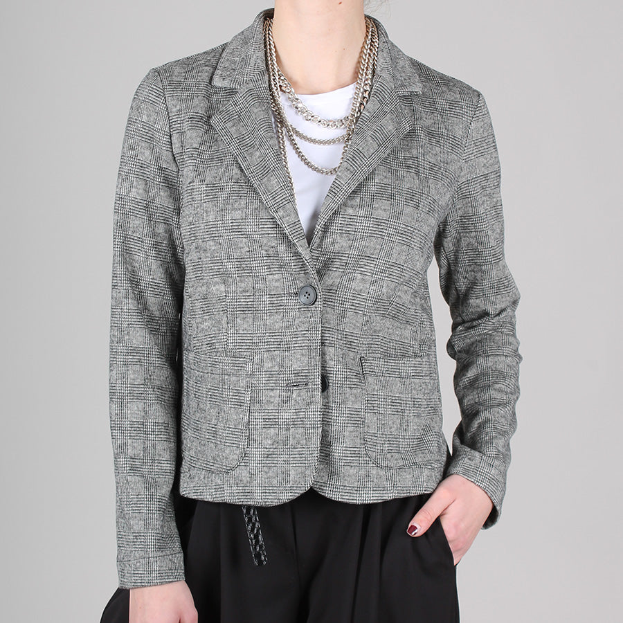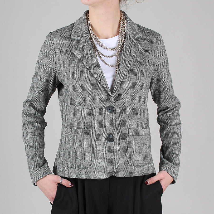 Blazer corto in viscosa in fantasia principe di Galles grigio.