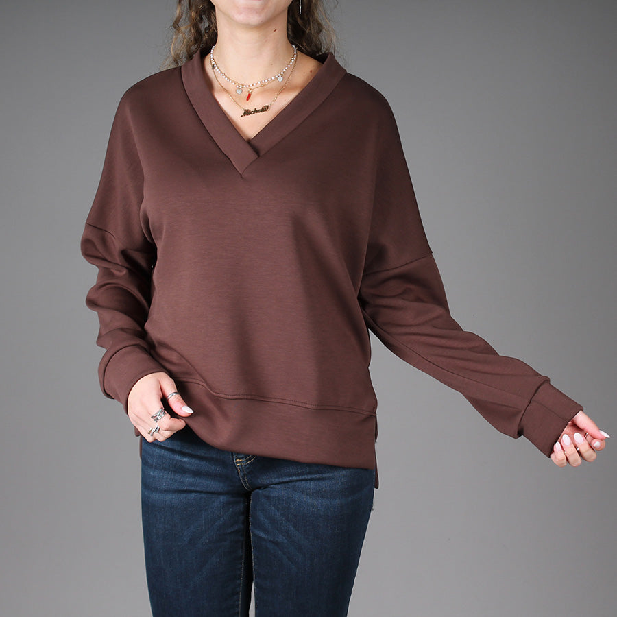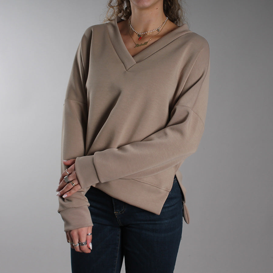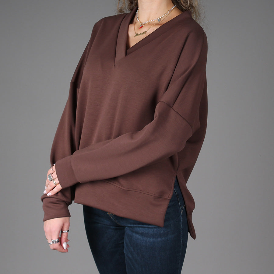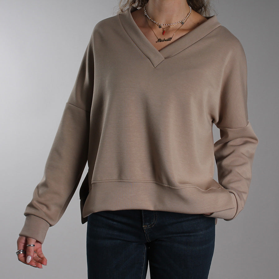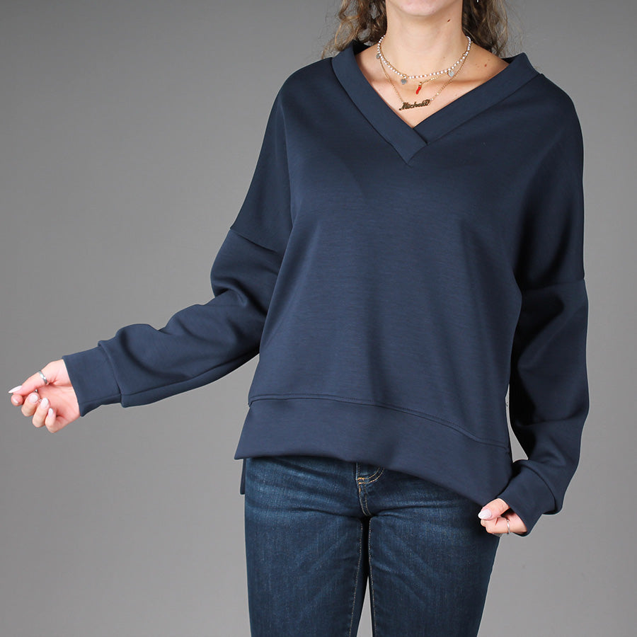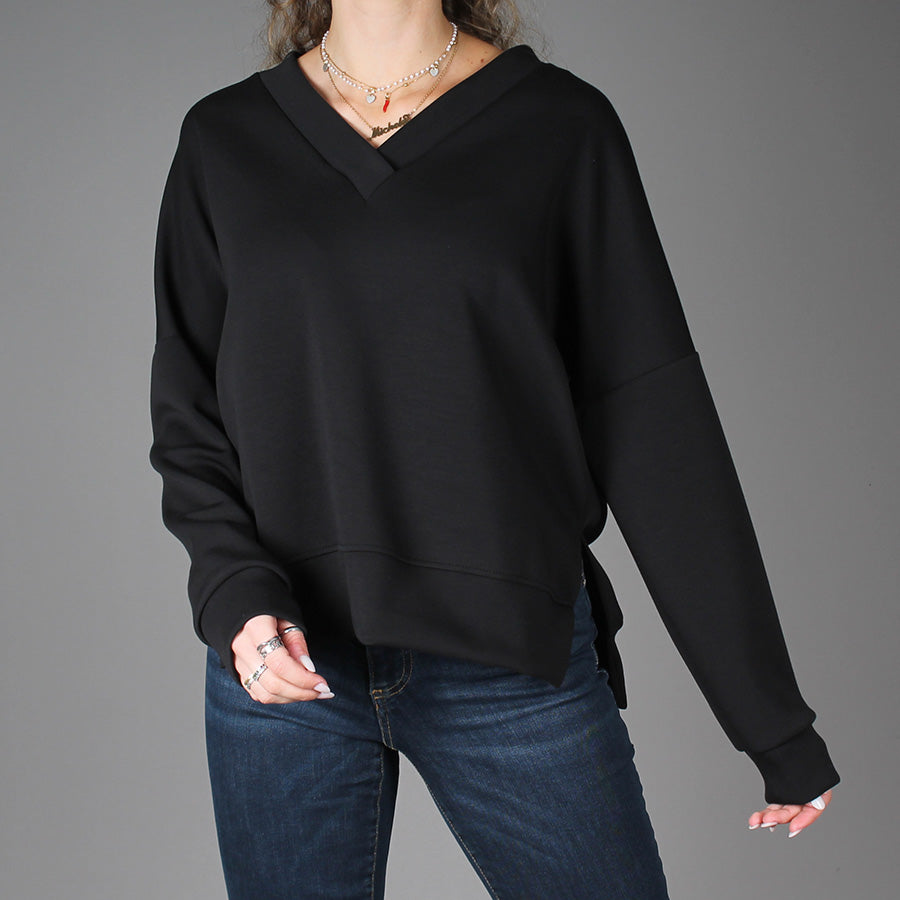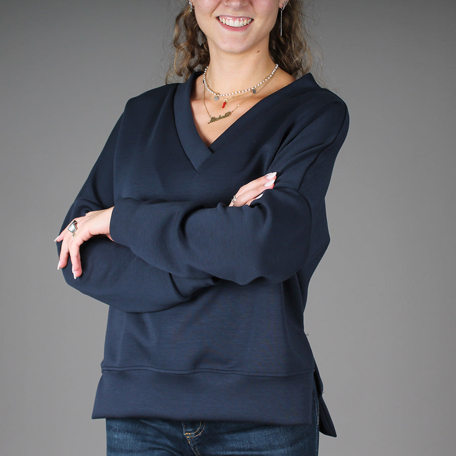 Felpa in scuba con scollo a V e spacchetti laterali.