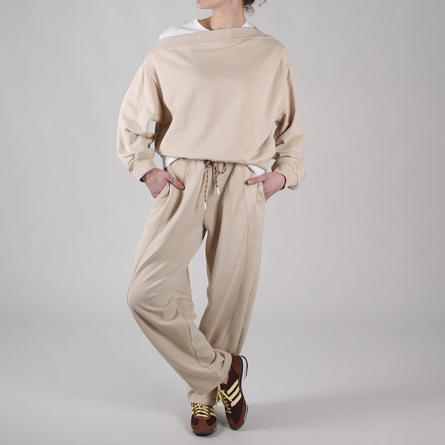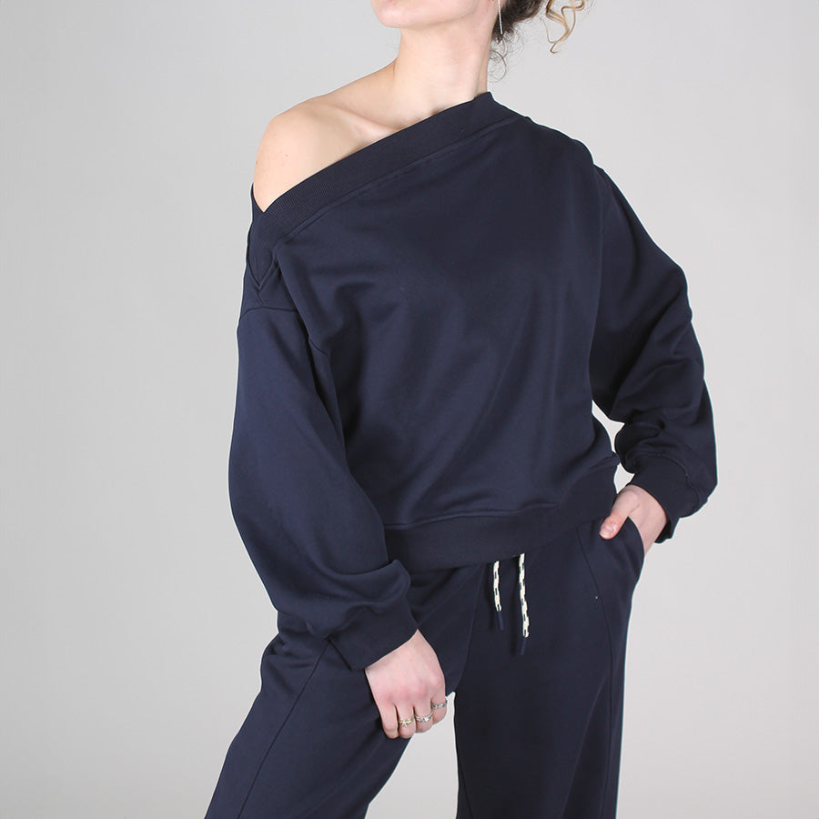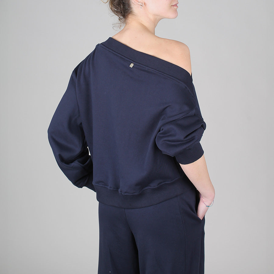Felpa garzata monospalla dalla vestibilità morbida, caratterizzata da un design asimmetrico che valorizza la femminilità.