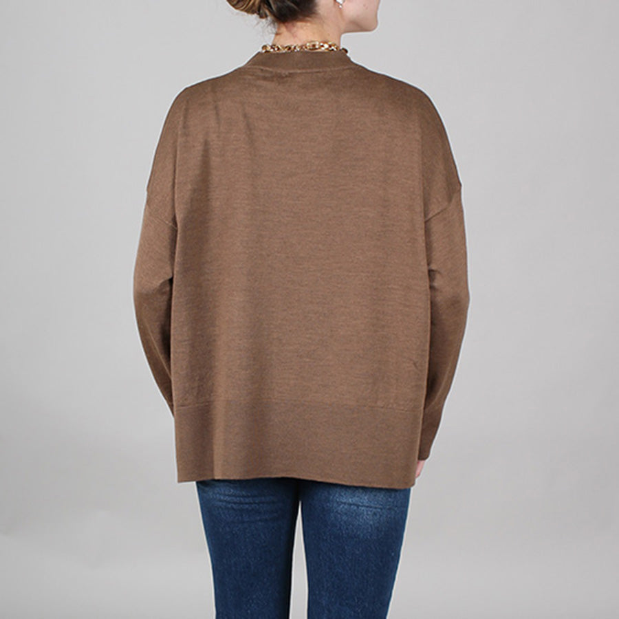 Merino wool sweater, made from a fine yet warm yarn. Dropped shoulders.