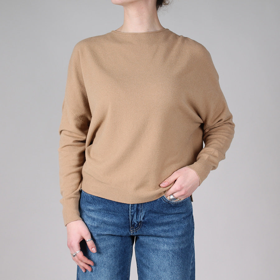 Pull ample à fentes latérales. Taille unique, convient aux tailles 38 à 46.