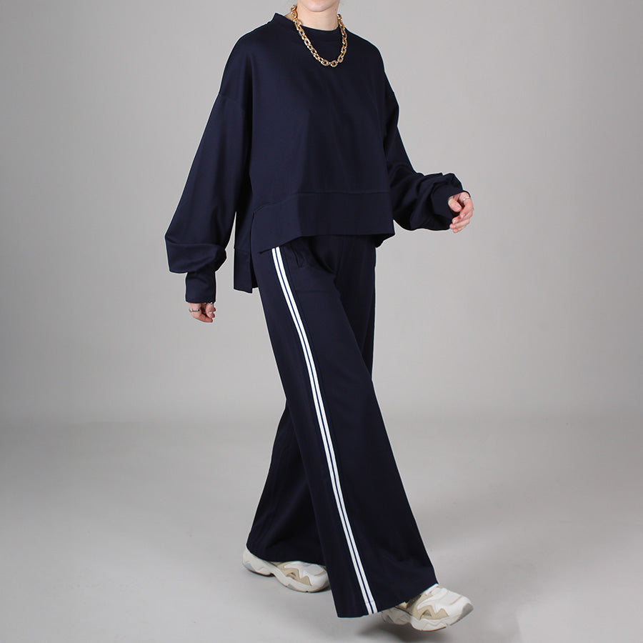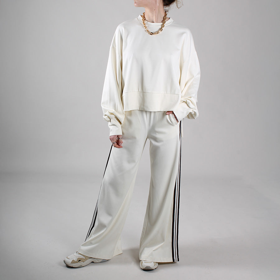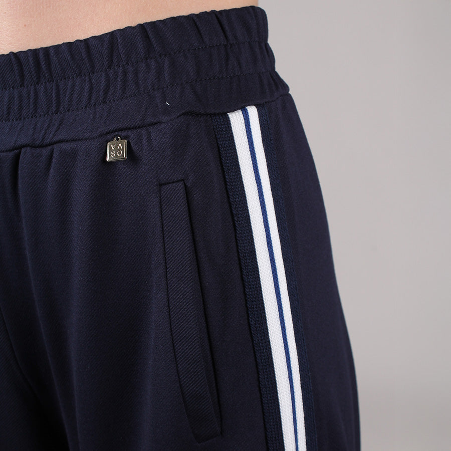 Pantalon à bandes latérales : taille élastiquée et poches latérales. Les bandes latérales contrastées apportent une touche à la fois sportive et élégante.